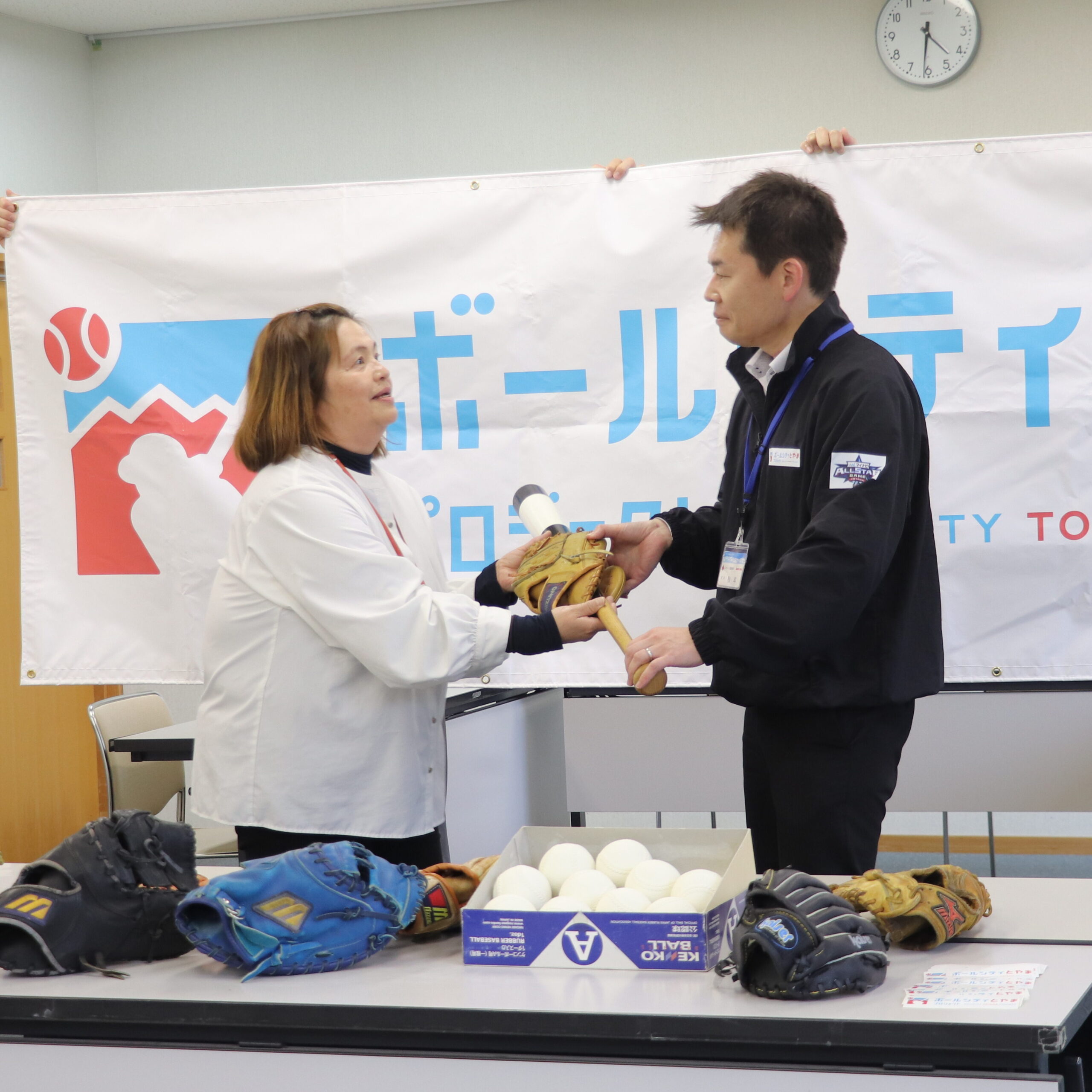 また、実行委員会でこれまで回収してきた野球用品を、児童養護施設・ルンビニ園と富山市立愛育園に寄贈しました。