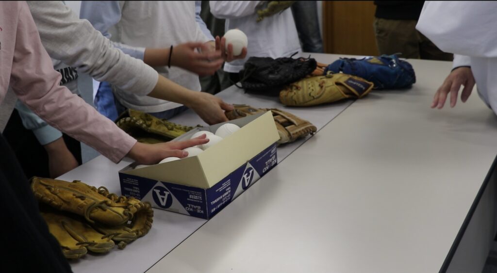 野球用品が子どもたちの手元に